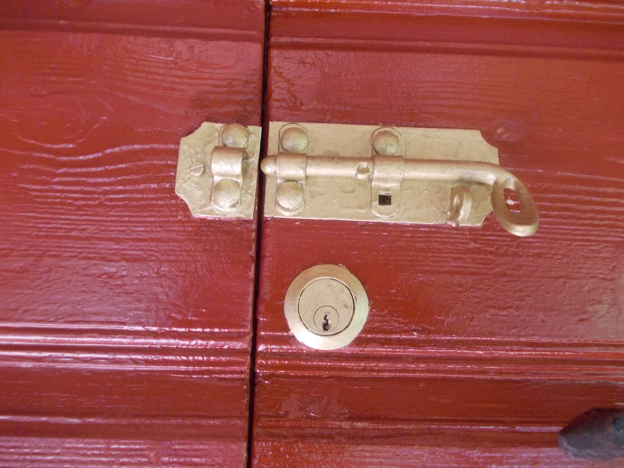 Le vecchie e le nuove serrature, i vari sistemi di chiusura e le maniglie, ruggini o rovinati li ho colorati con smalto sintetico dorato ad effetto antico.