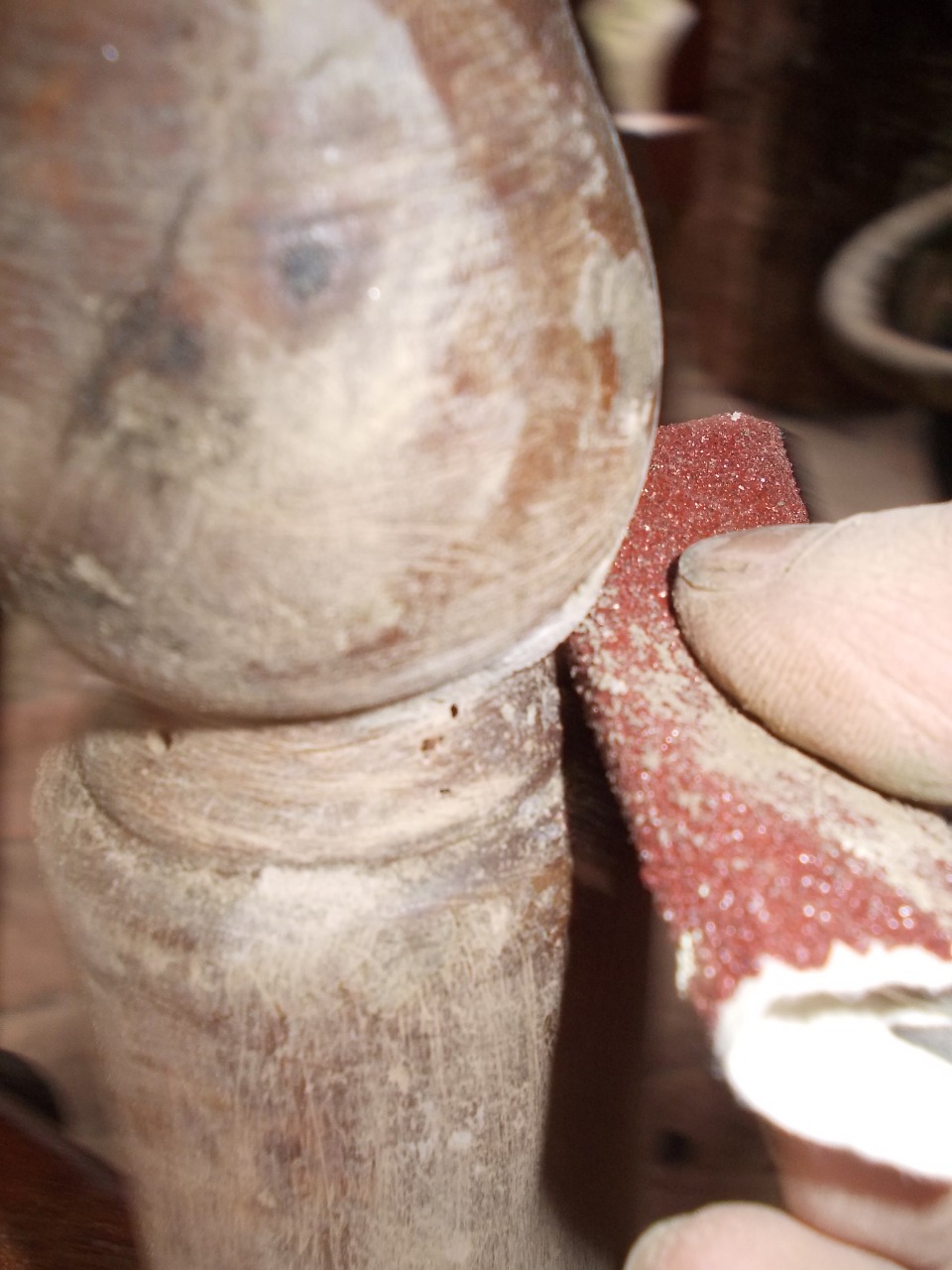 Per seconda cosa ho carteggiato con una carta vetrata grossa tutte le parti stuccate e le ho lisciate con della carta abrasiva.
